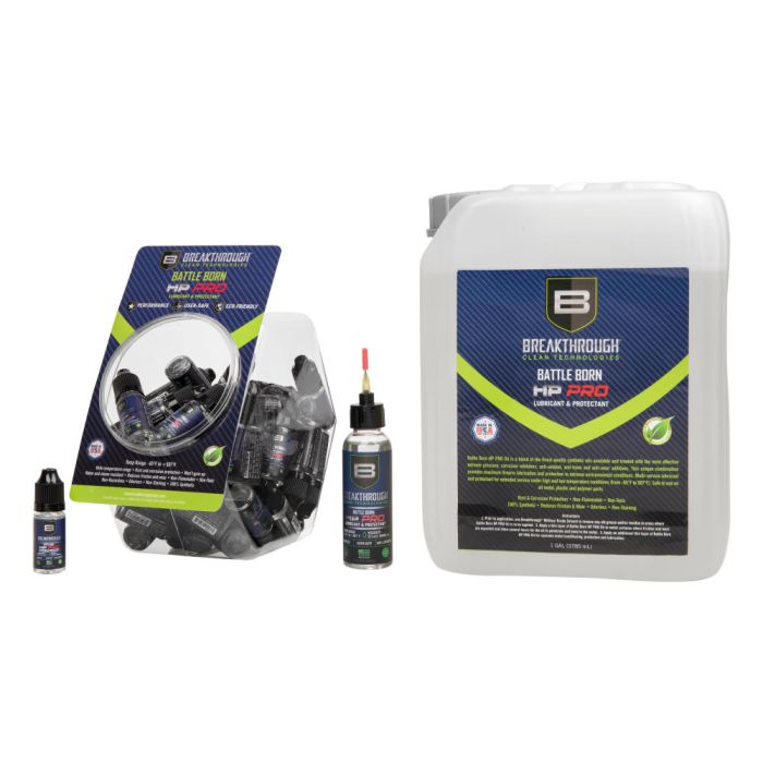 The Breakthrough® Clean Battle Born HP Pro Lubricant and Protectant is a blend of high quality, 100% synthetic gun cleaning oils. This anti-rust, anti-foam, non-toxic, odorless lubricant is treated with extreme pressure and anti-wear additives to provide ultimate and lasting corrosion protection and lubrication under a broad range of temperatures (from -65°F to 507°F). This innovative gun lubrication solution is safe for all metal, plastic and polymer components.