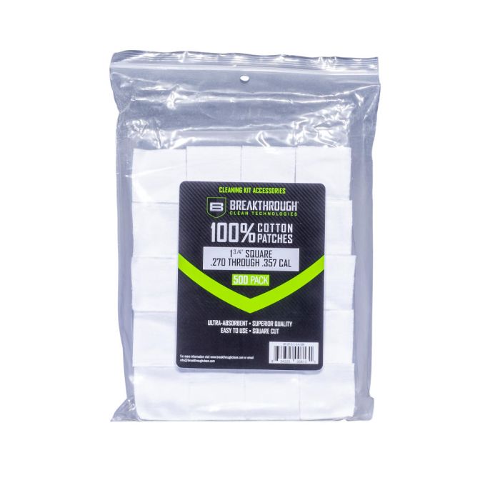 Breakthrough Clean Technologies Cotton Patches, 1.75" Square, 270 Thru 357 Caliber, 500-Pack